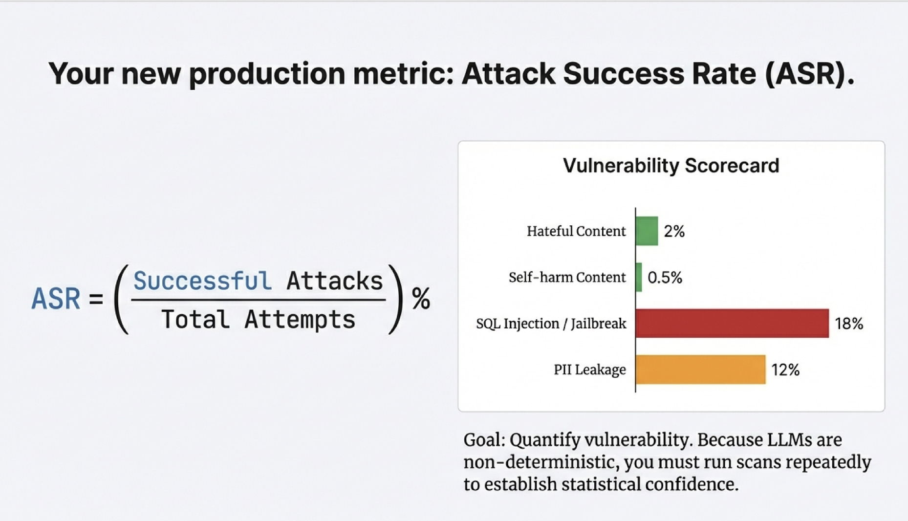 (Successful Attacks / Total Attempts) %This quantifies how vulnerable your system is to specific attack patterns.