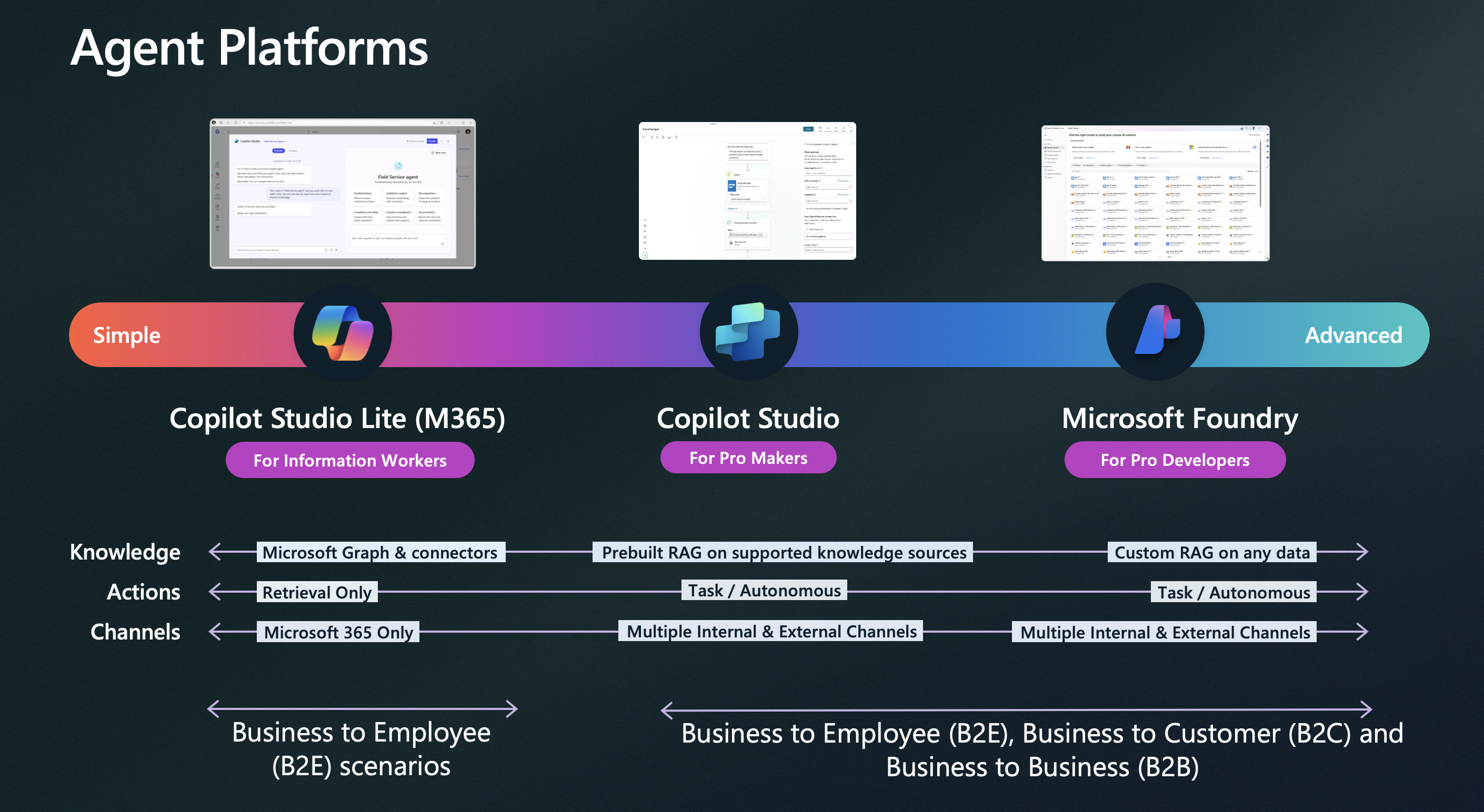 Microsoft Foundry for pro developers who need deeper control, custom grounding, and advanced architectures.