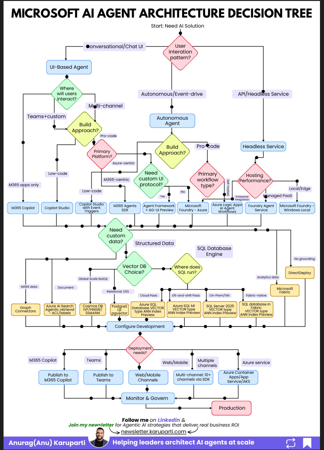 My colleagues at Microsoft put together this decision tree that I have referenced here. It is worth reviewing if you are building AI agents on Azure. Check it out here.